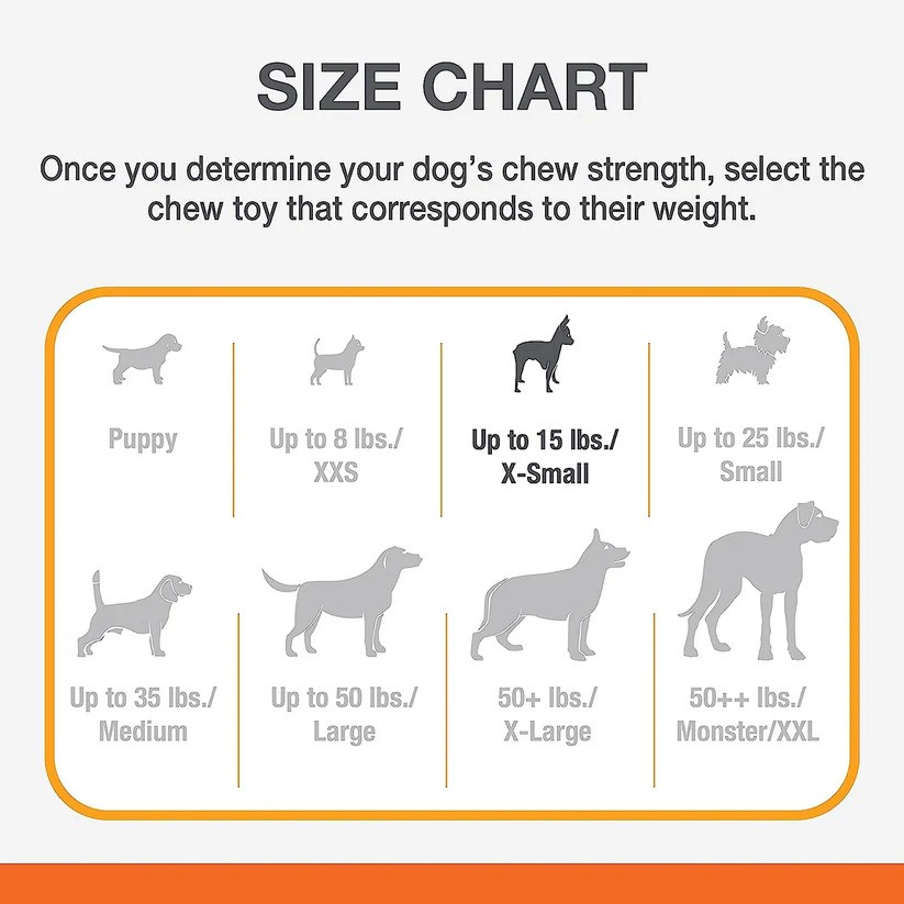 - Chew toy for puppies up to 15 pounds