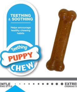 - Flexible chew toys help with puppy teething while cleaning teeth and freshening breath
