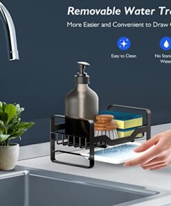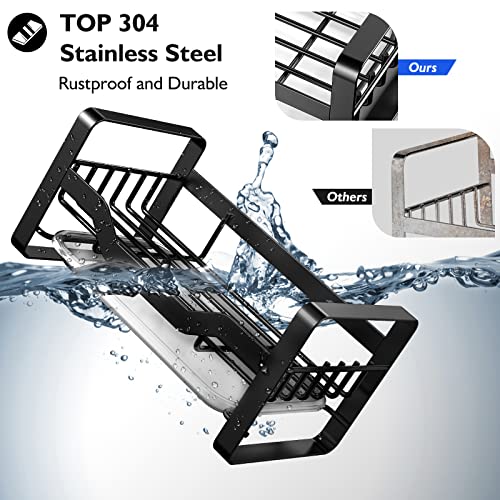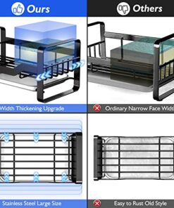 - 【Larger Capacity】Extended to 4 inches in width and 7.15 inches in length. Compared with other kitchen sink sponge holder , the length and width are improved. Therefore, this sponge holder can bring more storage space and improve the storage capacity. The Kontoyo sponge holder is perfect for storing sponges,dish soap,soap dispenser,brushes. Keep your kitchen sink counter clean and tidy