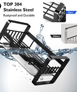 - 【Faster Drying】The kitchen sink organizer innovatively adopts a strip-shaped hole design, which increases the drainage speed compared with round holes, so that the surface of the sink brush holder can be quickly kept dry